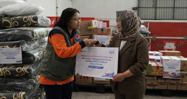 Bantuan tersebut diserahkan secara simbolis oleh Branch Manager BTN Kantor Cabang Bekasi, Shesharina Ayu Wulandini, kepada perwakilan pengungsi di tenda darurat Badan Nasional Penanggulangan Bencana (BNPB) di Jatirasa, Kota Bekasi, Jawa Barat.
