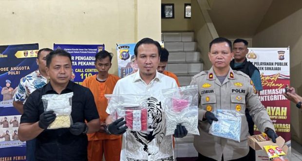 PEKANBARU – Polsek Sukajadi berhasil menangkap dua pengedar narkotika jaringan internasional di Jalan Merak Sakti, Kelurahan Simpang Baru, Kecamatan Binawidya, Pekanbaru, pada Minggu, 4 Agustus 2024.