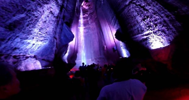 Tepatnya berada di dalam sebuah gua yang bernama Ruby Falls Cave, yang terbentuk jutaan tahun lalu akibat pengikisan batuan kapur oleh air asin.