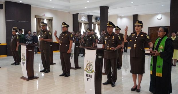 BERITAMAMUJU.COM, Kupang β Kejaksaan Tinggi Nusa Tenggara Timur (NTT) menggelar acara Pengambilan Sumpah, Pelantikan, dan Serah Terima Jabatan sejumlah pejabat baru, Kamis (20/6/2024). Acara yang berlangsung di Aula Lopo Sasando ini dipimpin oleh Kepala Kejaksaan Tinggi NTT, Zet Tadung Allo, S.H., M.H., pada Kamis pagi.