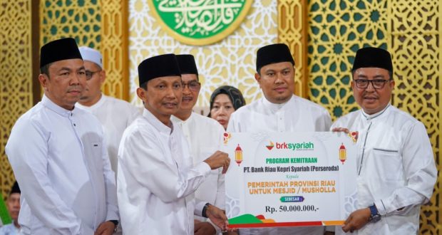 Sementara itu ditemui pada kegiatan tersebut, Direktur Pembiayaan BRK Syariah Tengkoe Irawan mengatakan, bantuan yang diserahkan Pj Sekdaprov ke masjid ini bersumber dari dana program kemitraan BRK Syariah dengan Pemerintah Prov Riau untuk meningkatkan pembangunan sarana dan prasarana Masjid di daerah.