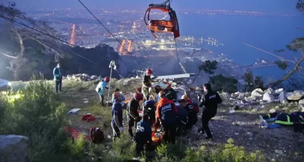 Dari video yang beredar, kereta gantung yang rusak nampak bergoyang dari kabel yang copot di sisi gunung berbatu saat petugas medis merawat korban luka. Kereta gantung itu membawa wisatawan dari Pantai Konyaalti ke restoran di Puncak Tunektepe setinggi 618 meter.